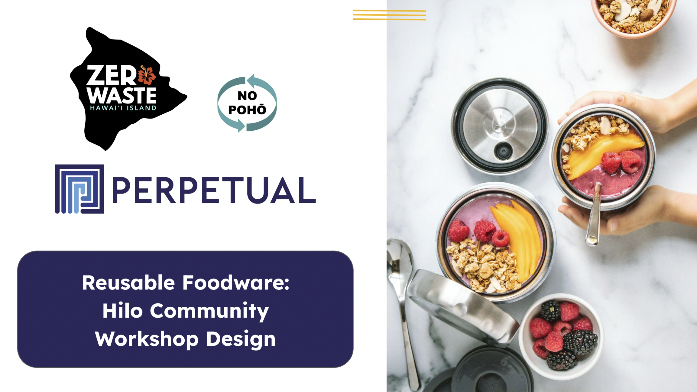 Zero Waste Hawai’i Island, with support from Perpetual, will be facilitating a Community-Driven Design Process to give Hilo community members the opportunity to shape the reusable foodware system. The overall project and a preview of the process were provided on a webinar on April 27th with local business and nonprofit leaders, who provided their input on how to plan the community design process. You can view the video of the webinar here and see the slide presentation here.